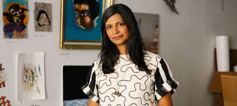 That belief—in our essential alikeness—stems from Joseph’s mixed-heritage upbringing. Her father immigrated in the 1970s from India to the United States, where he met her mother, an Irish Catholic from Pittsburgh. Joseph grew up in St. Marys, Pennsylvania, an overwhelmingly white Rust Belt town whose camouflage-and-flannel culture she says she still identifies with, despite having moved away years ago. Even though cultural resources were sparse, Joseph had a creative childhood, taking piano lessons from local nuns and portrait drawing classes alongside her father, K. C. Joseph. A surgeon by trade, the elder Joseph had an artistic spirit, and for years made surrealistic collages for his patients using photos of their organs. (In 2022, his daughter curated a show of this work at Soloway Gallery in Brooklyn.)